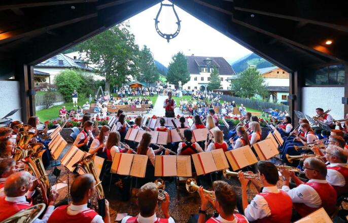 Konzert der Trachtenmusikkapelle Großarl. Es gibt einen kleinen Getränkeausschank, der Eintritt ist frei. Bei schlechtem Wetter findet es im Turn- & Kultursaal der Volksschule Großarl statt.