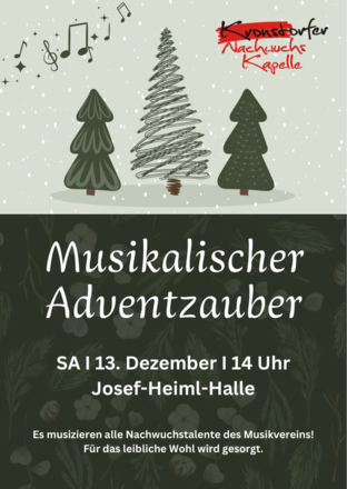 Lassen Sie sich von zahlreichen Beiträgen unserer Nachwuchstalente verzaubern und in Weihnachtsstimmung bringen. Die Kronstorfer-Nachwuchs-Kapelle freut sich auf Ihren Besuch! Eintritt: freiwillige Spende
