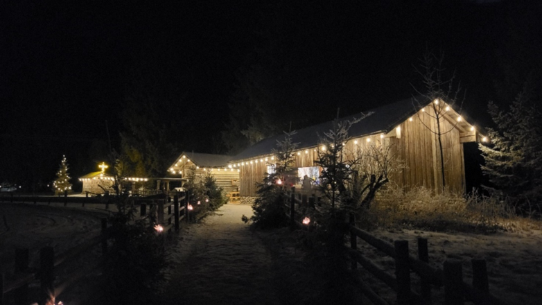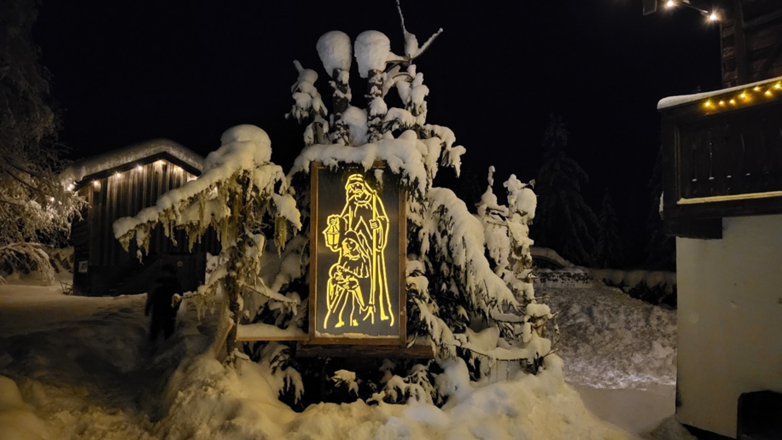 - Eine lebendige Krippe mit Ochs, Esel und Schafen, die den Zauber der Heiligen Nacht lebendig werden lässt.