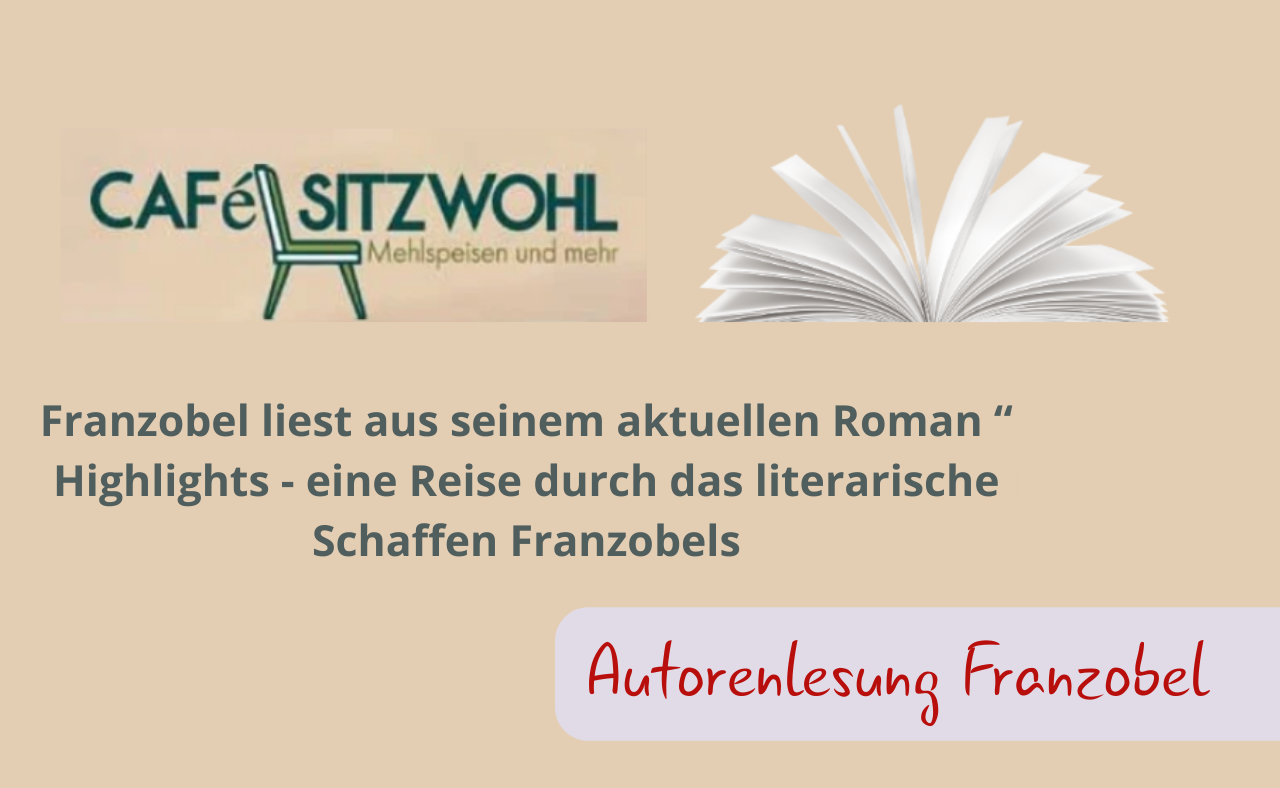 Autorenlesung "Franzobel". Der österrreichische Autor liest aus seinem aktuellen Roman "Highlights - eine Reise durch das literarische Schaffen Franzobels". Infos und Reservierung: Café Sitzwohl, Tel.: +43 650 33 92 441 oder cafesitzwohl@gmail.com