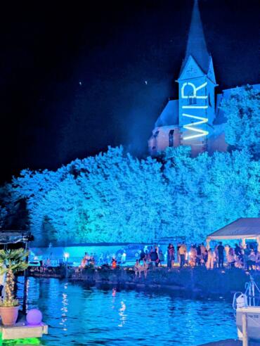 Beim Anlegen der Marienschiffe in Maria Wörth werden beide Kirchen beleuchtet und erstrahlen mit einer Lichtinstallation dabei erklingt das Ave Maria auf der Kristallpanflöte als Gruß von Maria Wörth zu den Schiffen.