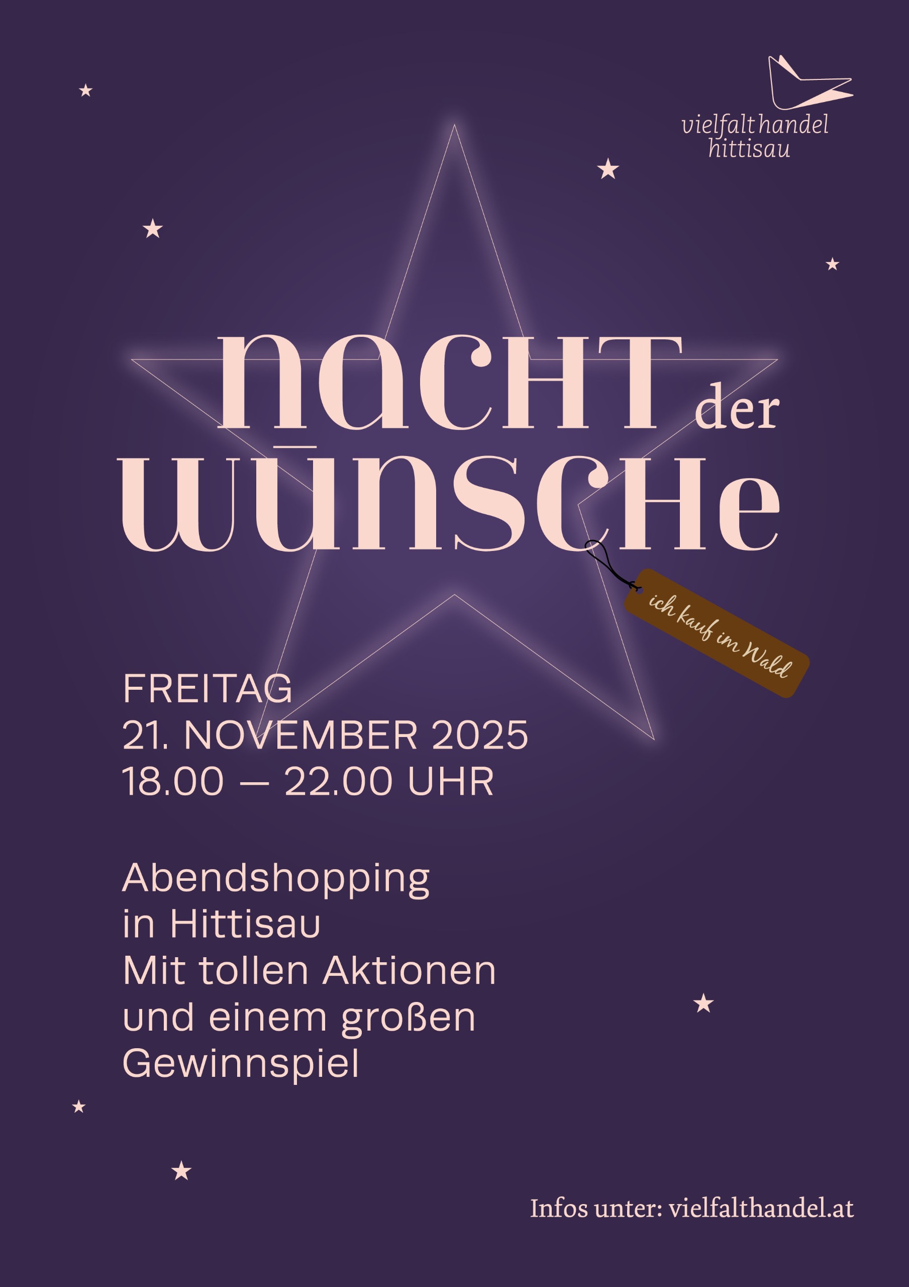 Heuer findet die Nacht der Wünsche erstmals statt. Vielfalt Handel Hittisau hat sich nach Jahren des Einkaufsglücks für ein neues Format entschieden – und für einen früheren Termin, um Überschneidungen zu vermeiden.