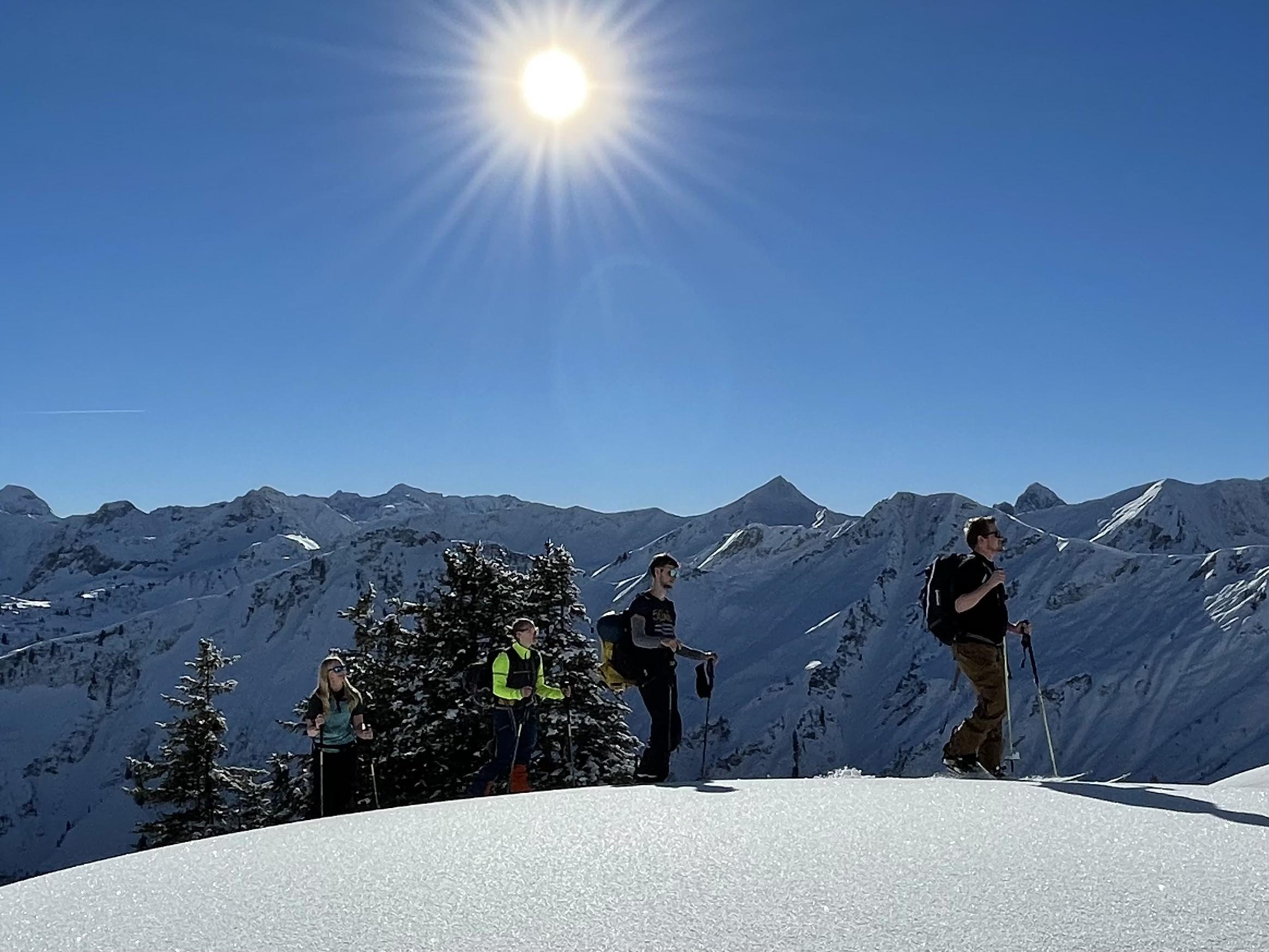 Voraussetzungen: bis zu 4 Stunden Aufstieg, sicheres Fahren aller Schneetypen abseits der Piste (Gelände, Off-Piste) Tourenverlauf: Maßgeschneiderte Touren im Kleinwalsertal, täglicher Startzeitpunkt ca. 08:30 Uhr, zwei Abendveranstaltungen Theorie über Schneewissen, Sicherheitsmanagement, Q&A.