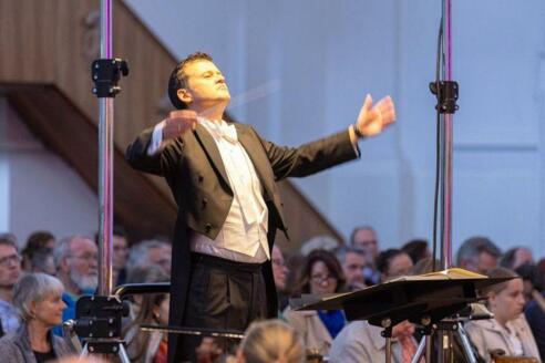 Der Joseph Chor München und das Freie Landesorchester Bayern musizieren unter der Leitung von Thomas Scherbel.