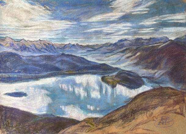 Es geht los mit der Vernissage am Freitag, den 14. November um 18:00 Uhr. Danach ist die Ausstellung vom 15.11. bis 30.11.2025 immer am Freitag, Samstag und Sonntag von 14:00 bis 19:00 Uhr geöffnet. Wie der Ochs auf die Leinwand und die Berge aufs Papier kommen, erzählt Euch die Malerin, wenn sie jeweils um 15:00 Uhr selbst durch die Ausstellung führt.
