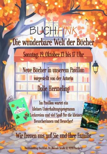 Verkaufsoffener Sonntag in Parsberg - die Welt der Bücher in der Buchhandlung Buchfink. In einem, extra für die Vorstellung von zwei neuen Büchern für die ganze Familie aufgebautem und stimmungsvoll dekoriertem Pavillon findet am Sonntag 19. Oktober von 13 bis 17 Uhr ein unterhaltsamer Nachmittag mit neuen Büchern, kleinen Leckereien und Give-aways statt.