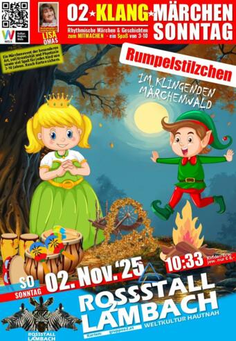 Kinder lieben Märchen und Geschichten. Sie identifizieren sich mit den Gestalten, leben ihren Hang zu Magie und „fremden Welten“ aus und sind gefesselt von den spannenden, unterhaltsamen und lehrreichen Handlungen und Aktionen in den alten Geschichten. Aber Märchen fördern auch aktiv. Kinder können Sozialverhalten, Selbstbewusstsein und Kreativität aus den fantastischen Geschichten lernen und die kindliche Phantasie und Vorstellungskraft wird gestärkt. Elisabeth „Lisa“ Wagner, „Lisa Oma“ erzählt und spielt Klanggeschichten aus ihrem Buch „Das klingende Märchenschloss“ und lädt dabei zum Mitmachen ein. Neben der Unterhaltung wird zusätzlich auch das Verständnis für die Musik und die klangvollen Rhythmen spielerisch geweckt. Ein Märchenevent voll Kreativität und Phantasie sowie viel Spaß für jedes Kind.