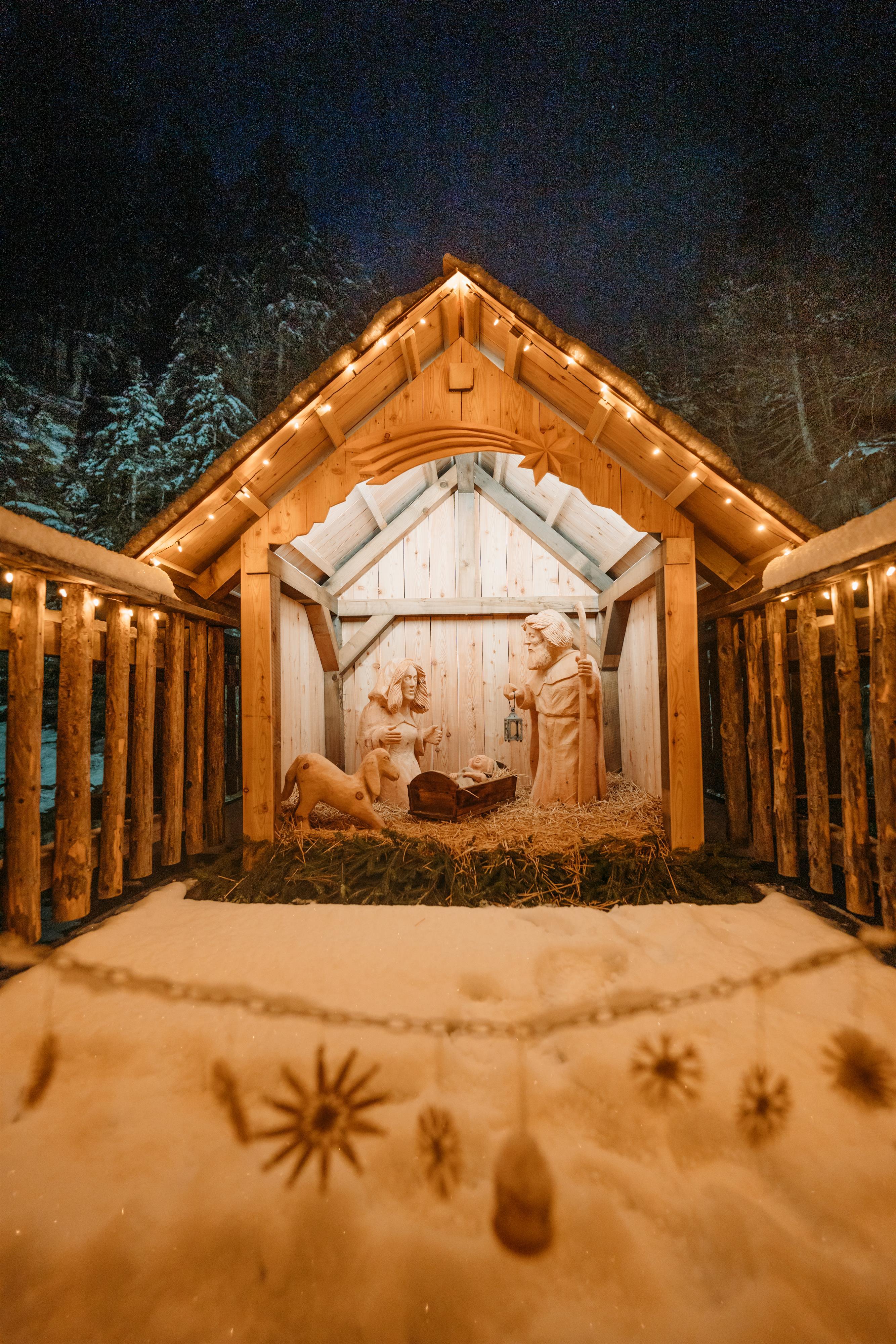 Beleuchteter Adventweg zum ersten Gössfall mit Weihnachtskrippe gestaltet von Klaus Mölzer, Holzkünstler aus Gmünd. Ein einzigartig, schöner Ausblick auf den Göss-Wasserfall stimmungsvoll eingerahmt mit sanfter Beleuchtung und einer wunderschönen Krippe aus Holz. Eine eindrucksvolle Kulisse vor dem Wasserfall mit Weihnachtskrippe.