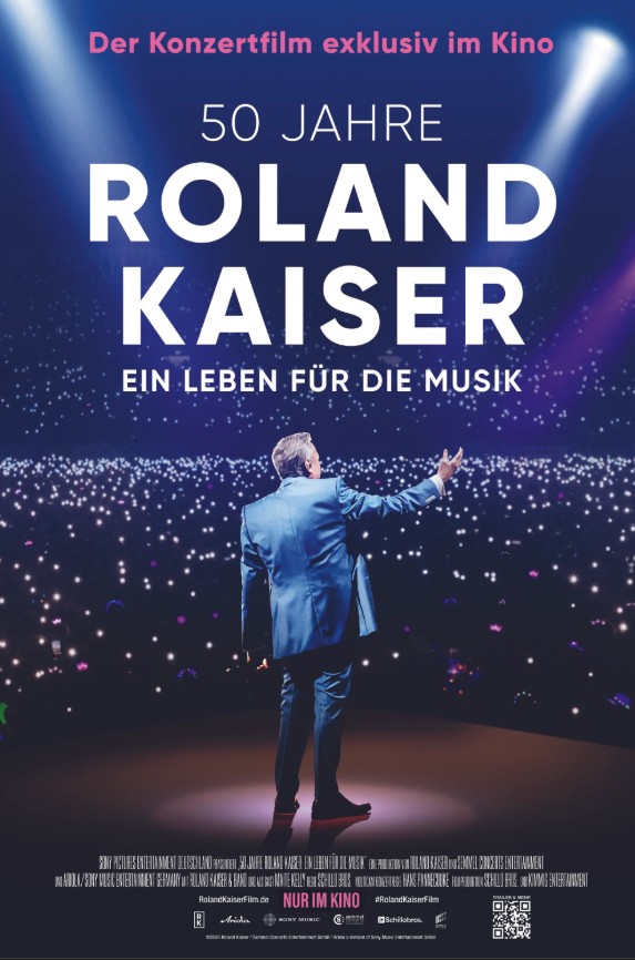 Musiklegende Roland Kaiser feiert dieses Jahr sein Kino-Debüt. Im Rahmen seiner ausverkauften „RK50 I 50 Jahre – 50 Hits!“-Tournee im vergangenen Jahr wurde er filmisch begleitet. Die spektakuläre Show wird gemeinsam mit exklusiven Backstage-Einblicken ab dem 21. Oktober 2025 als Film im Kino zu sehen sein. Roland Kaiser schaut gemeinsam mit verschiedenen Wegbegleitern und Wegbegleiterinnen auf die vergangenen 50 Jahre zurück und gibt nie dagewesene Einblicke in sein Leben sowie seinen Touralltag. Seine großen Hits dürfen dabei natürlich nicht fehlen.