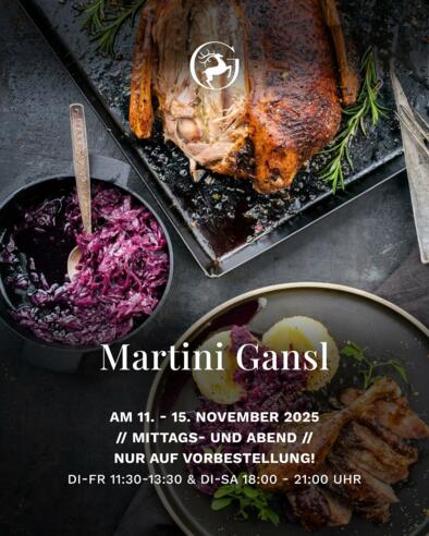 Martini Gansl (auf Vorbestellung) 11. - 15.11.2025 Mittag & Abend: