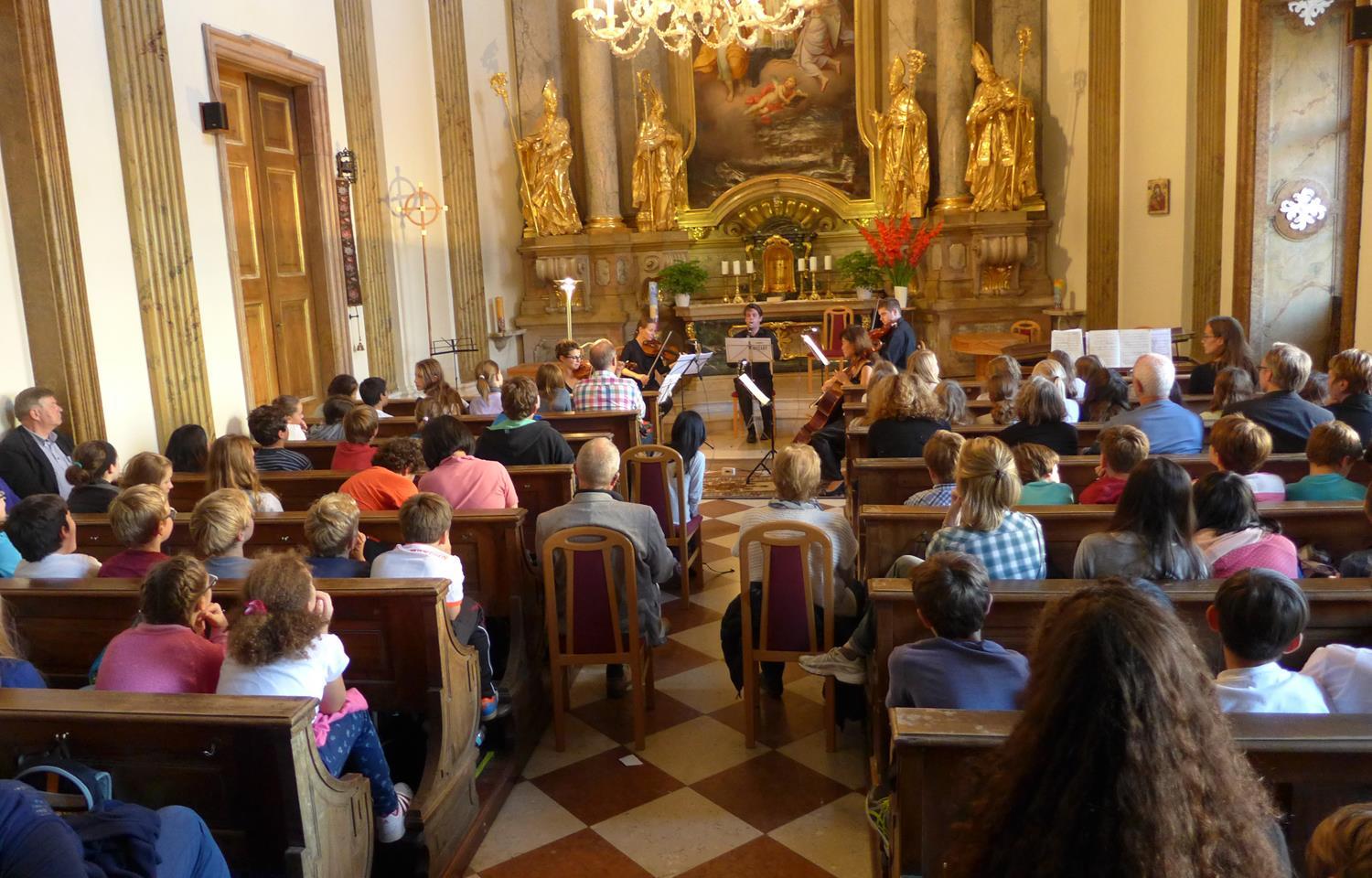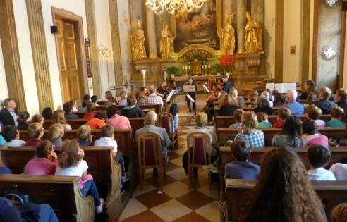 Eine Stunde mit klassischer Musik in der Schlosskirche Mirabell mit Werken von W. A. Mozart, J. S. Bach u. a. Yuying & Helian Zehetmair (Violoncello und Klavier) musizieren u. a. mit dem Ensemble (Solo) "Salzburg Classics".
