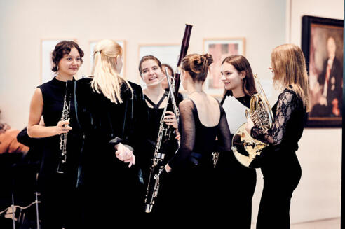 Studierende der Kammermusikklasse Gabriel Ahumada an der Stella Musikhochschule musizieren im Kleinen Saal der Stella.