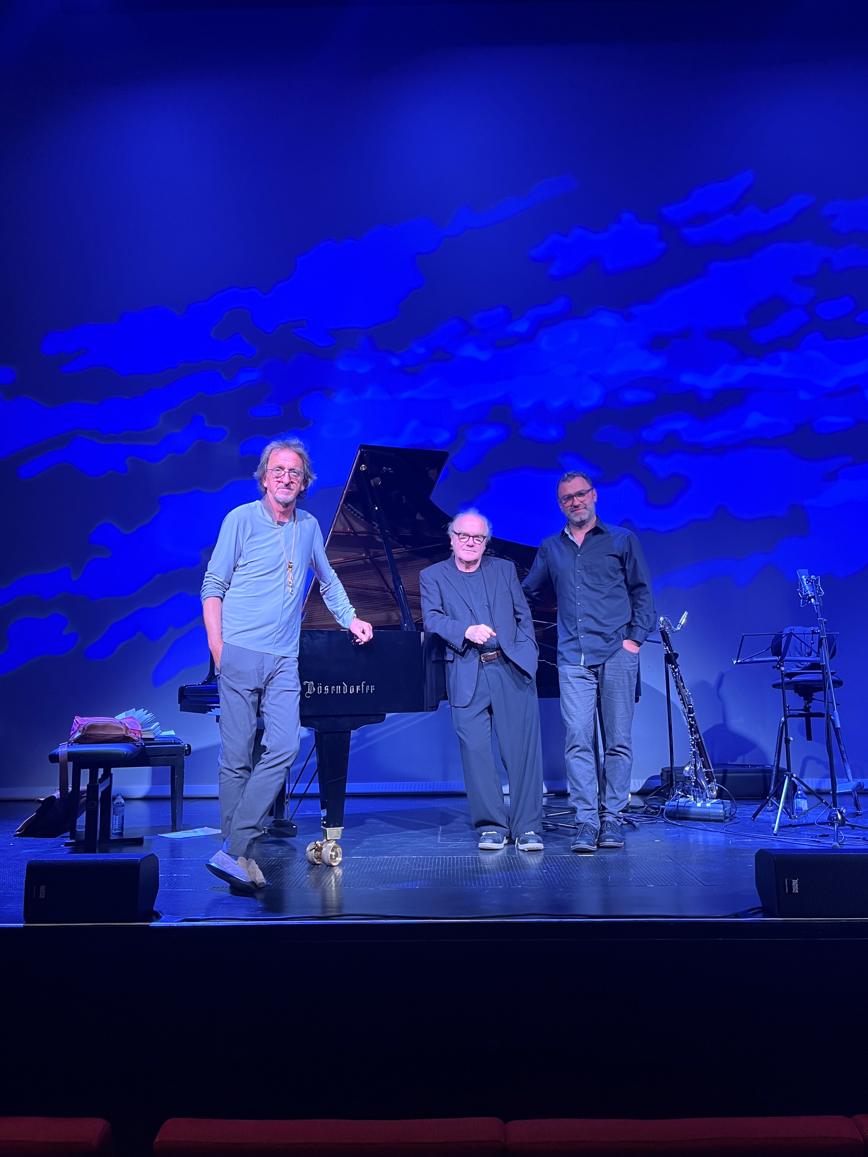 Musikalisch begleitet wird Michael Köhlmeier vom Saxophonisten Klaus Dickbauer und vom Jazzpianisten Martin Gasselsberger. Wie kaum andere verstehen sie es, musikalisch auf die Stimmungslagen der gelesenen Texte zu reagieren, teils spontan improvisiert, teils komponiert und stets im unnachahmlichen Sound dieses international hochgeschätzten Duos.