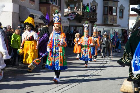 Um 19:00 Uhr beginnt das feierliche Fåsnåchtsuache – der erste Auszug aus dem Fasnachtshaus.