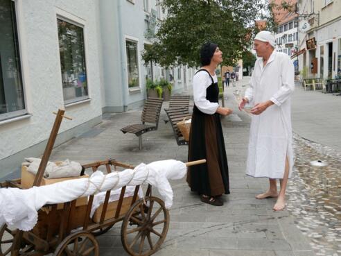 Erleben Sie in Schauspielszenen, wie Ritter Heinrich mutig seinen Kaiser verteidigt, hören Sie vom Ratsch und Tratsch der mittelalterlichen Reichsstadt, erfahren Sie vom Leben am Hofe der Fürstäbte in der Stiftsstadt und treffen Sie die „letzte Hexe“ Maria Anna Schwegelin auf ihrem Weg ins Gefängnis. Wir machen Geschichte für Sie lebendig.