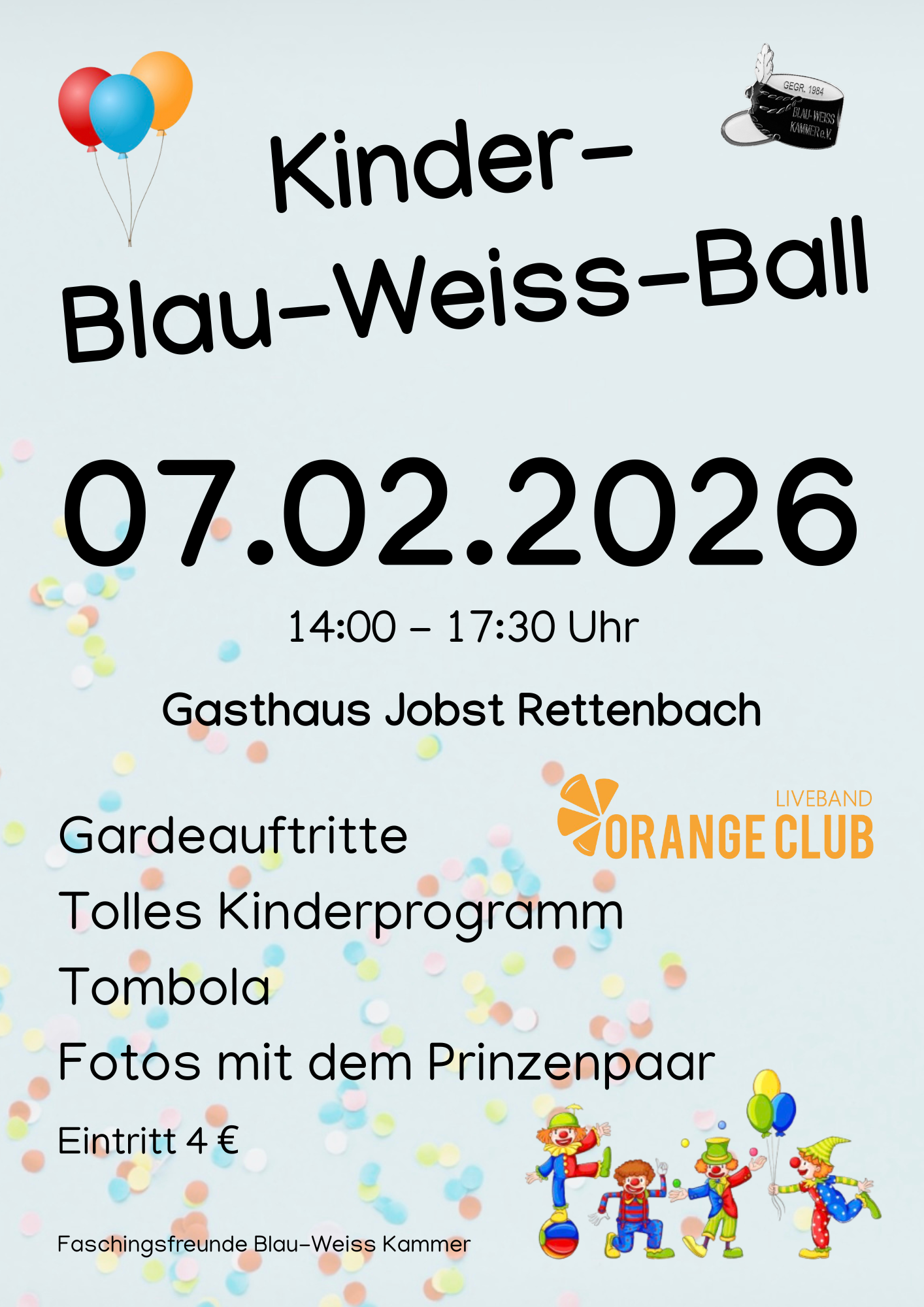 Kinder-Blau-Weiss-Ball am 07.02.2026 von 14:00 - 17:30 Uhr