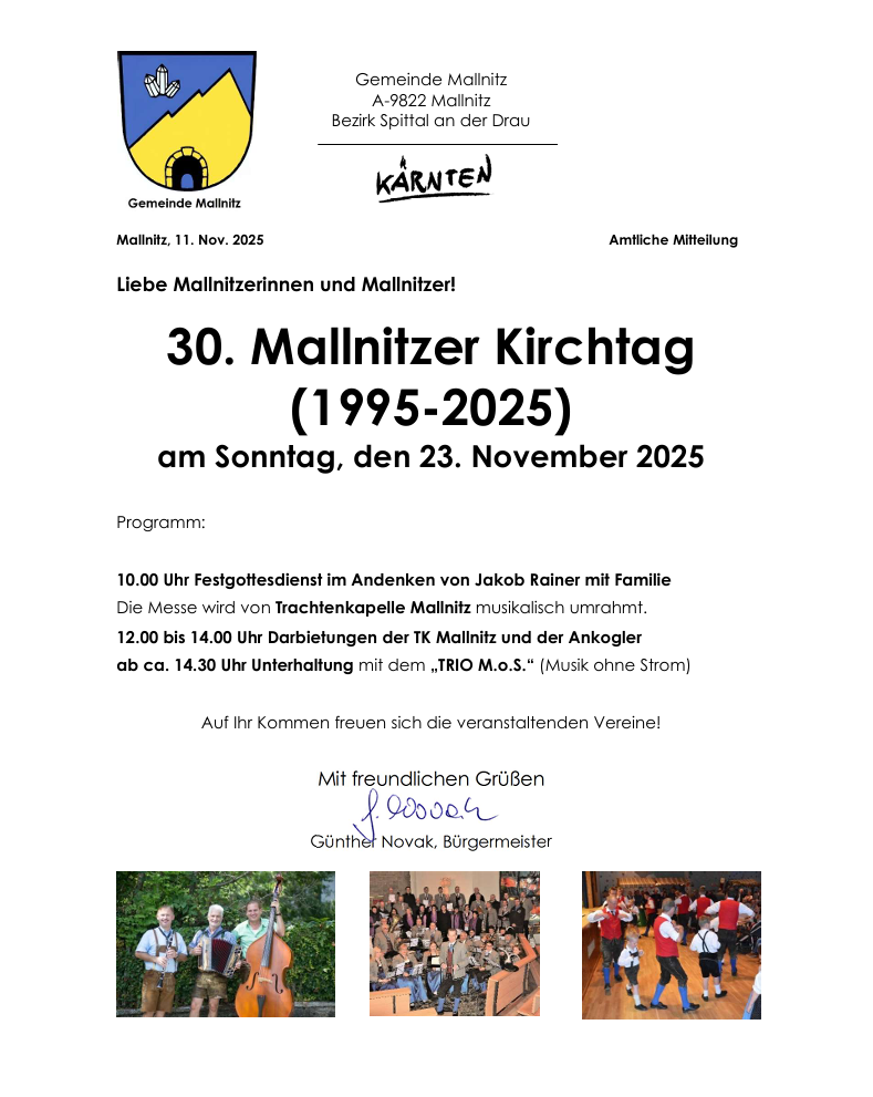Herzliche Einladung zum 30. Mallnitzer Kirchtag