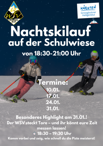 Erlebe Pistenspaß unter dem Sternenhimmel! Beim Nachtskilauf auf der Schulwiese erwarten dich perfekt beleuchtete Hänge und ein ganz besonderes Wintererlebnis.