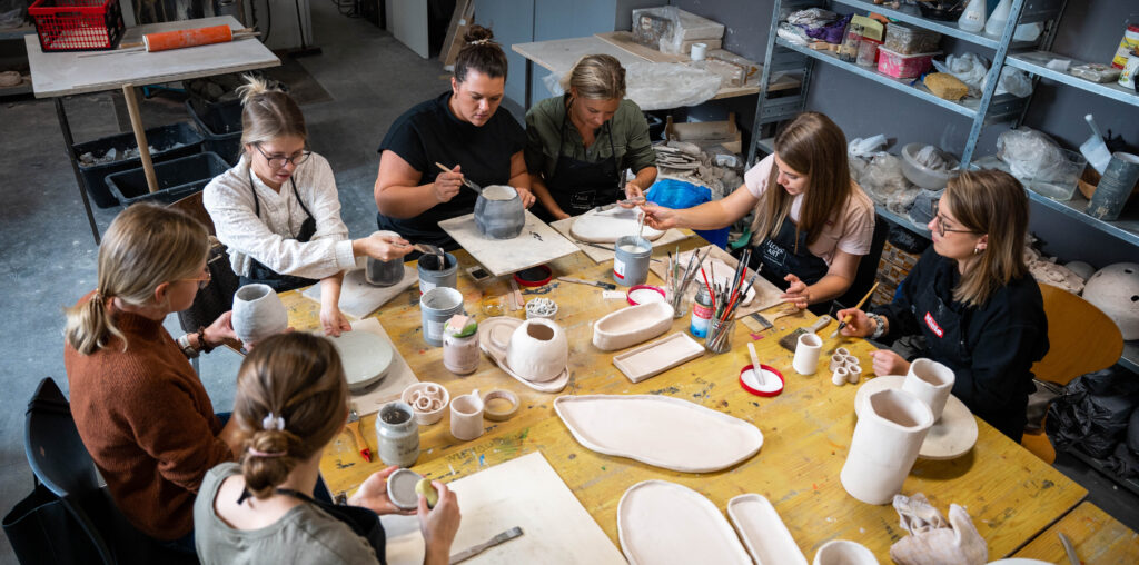 Mithilfe der Plattentechnik formen wir eine Etage tiefer in der Keramikwerkstatt für Deinen nächsten Brunch Teller, Müslischüsseln, Eierbecher, Kaffee- & Teehäferln. Alles, was das Herz begehrt für Dein persönlich gestaltetes Brunchgeschirr. Für Deine individuelle Oberflächengestaltung bring gern Blumen, Blätter, Stoffe o.ä. mit oder bediene Dich aus unserem Stempel- und Strukturhölzerfundus. Begleitet wird der Brunch-Set-Workshop von Josseline Engeler, Leiterin der Offenen Keramikwerkstatt Wels im MKH.