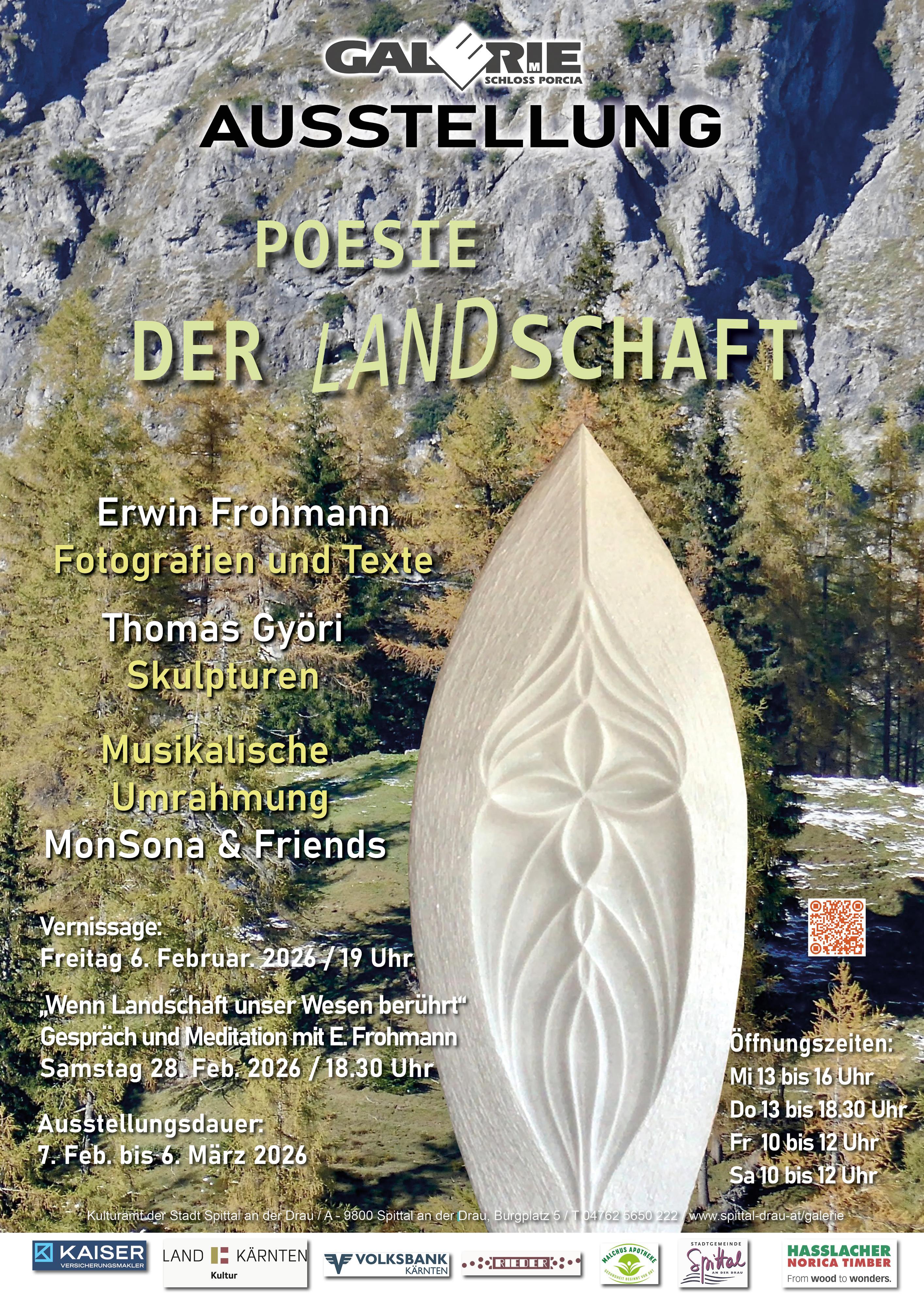 28. Februar 2026, 18.30 Uhr, Galerie Porcia: „Wenn Landschaft unser Wesen berührt“, Gespräch und Meditation mit Erwin Frohmann