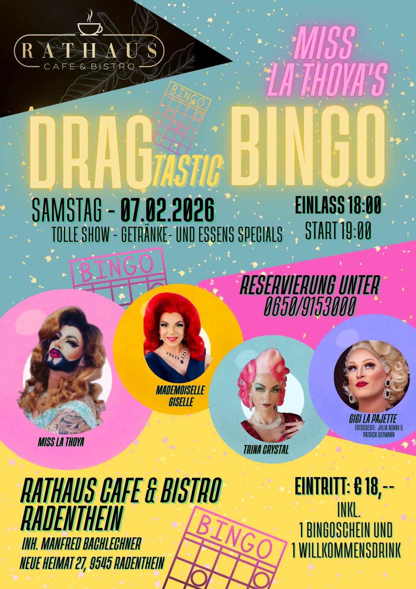 Miss La Thoya lädt zu DragTastic Bingo mit einer mitreißenden Show, jeder Menge Spaß sowie Getränke- und Essensspecials ein.