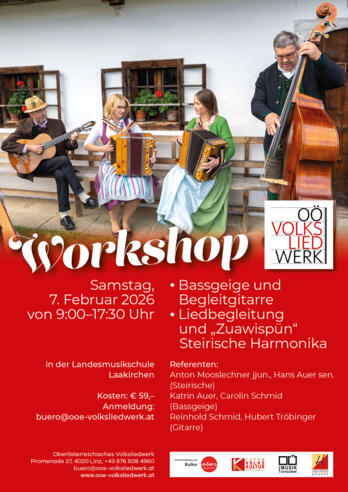 Workshop für Bassgeige & Begleitgitarre sowie Liedbegleitung & Zuawispün für Steirische Harmonika
