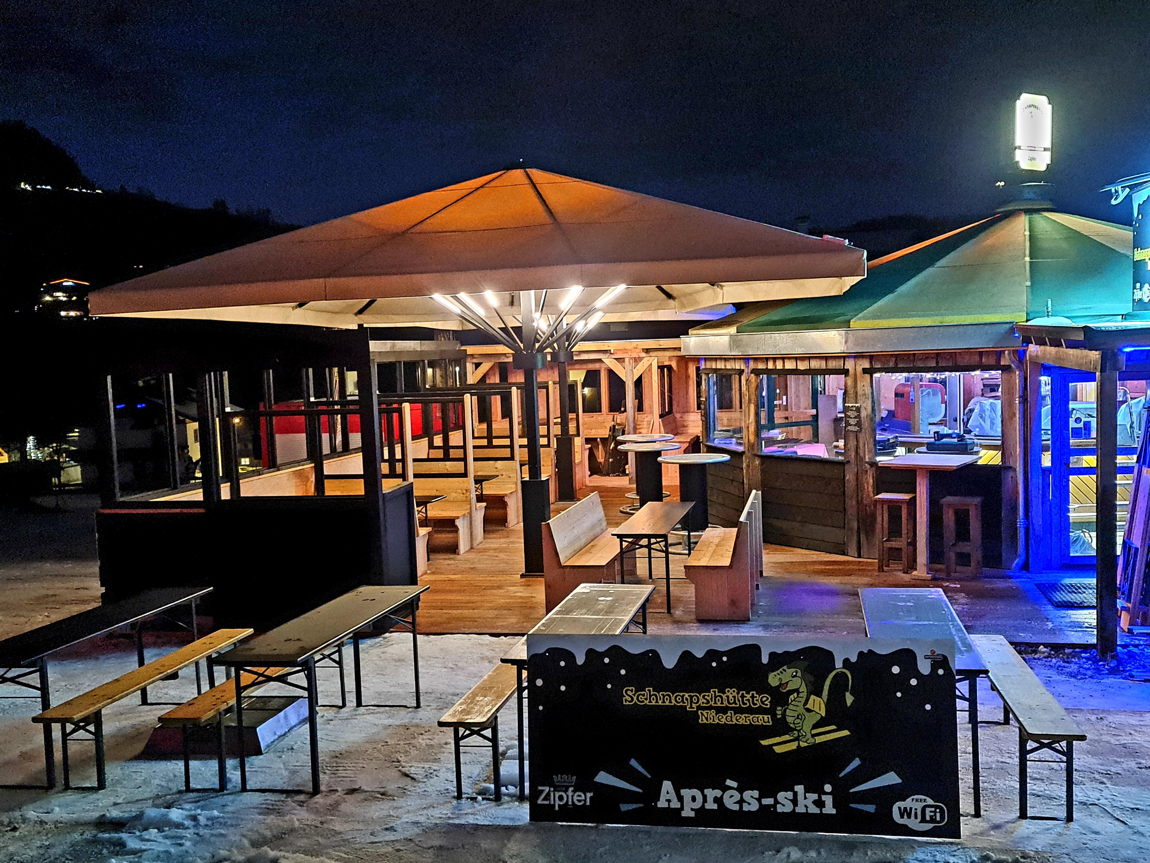 Feiere den perfekten Skitag beim Aprés Ski in der Schnapshütte bei der Talstation Markbachjochbahn – heiße Beats und unvergessliche Hüttengaudi warten!
