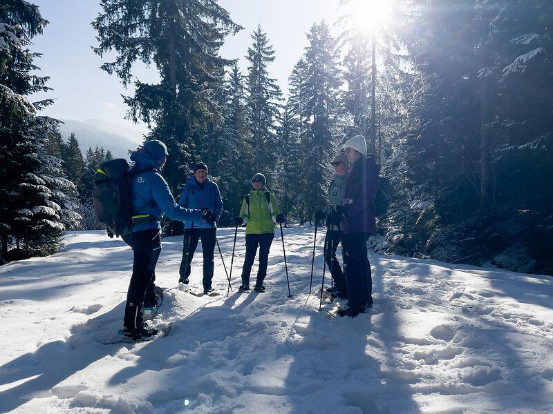 Zusammen mit Naturpark-Rangerin Iris und Naturpark-Ranger Manuel geht es bei dieser sportlichen Wanderung vom Parkplatz Falkenmoos in Achenkirch bergauf zu einem wunderbaren Aussichtspunkt mit Blick auf den Hinter- und Vorderunnutz. Danach verläuft die Route in Richtung Falkenmoosalm, wo die „Überlebensstrategie der Wildtiere im Winter“ ins Auge gefasst wird. Der Weg führt weiter vorbei an einer Wildtierfütterung und anschließend zurück zum Ausgangspunkt.