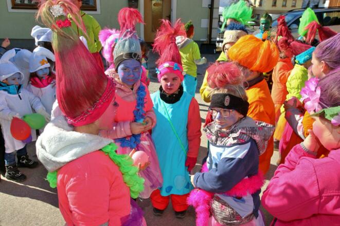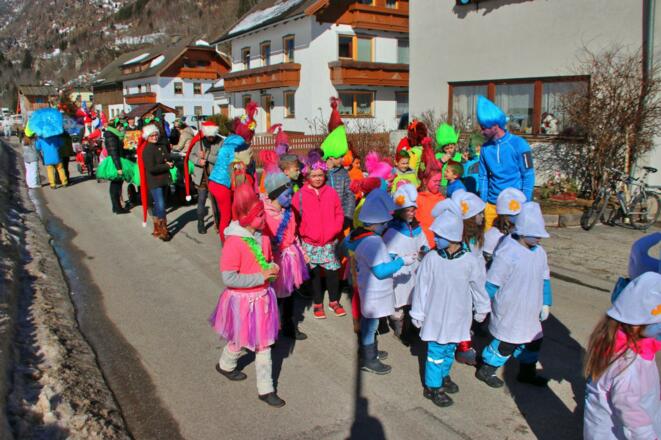 Faschingsumzug mit den Kindern der Volksschule und des Kindergartens. Die Kinder und PädagogInnen freuen sich auf viel maskiertes Publikum.