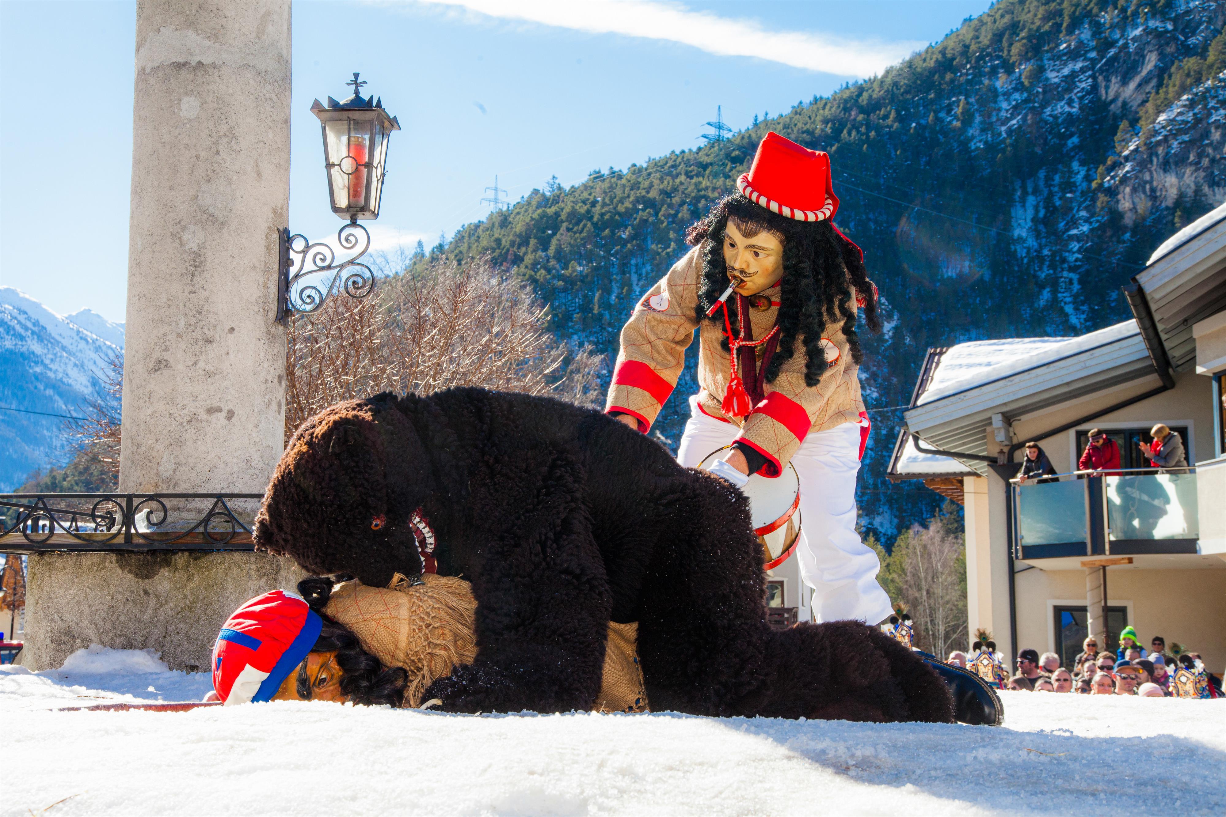 Das Fasnachteingraben in Nassereith ist ein traditioneller Brauch, der den Abschluss der Fasnacht am Faschingsdienstag markiert. Dabei wird die Fasnacht, oft symbolisch durch einen "Ruaßler"dargestellt, in Form einer Art Begräbnisprozession zu Grabe getragen. Die Trauergäste, viele mit schwarzen Tüchern, ziehen durch das Dorf, um die Fasnacht zu betrauern, die dann für vier Jahre "eingegraben"wird, bis zur nächsten Fasnacht.