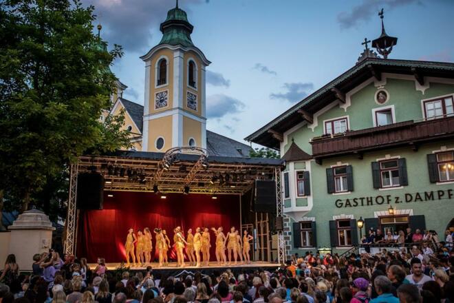 Die Aufführung am Hauptplatz und das Treffen mit der Trachtengruppe Edelraute ermöglicht dankenswerterweise der Tourismusverband St.Johann in Tirol. Bei Regen findet die Veranstaltung im Kaisersaal statt.