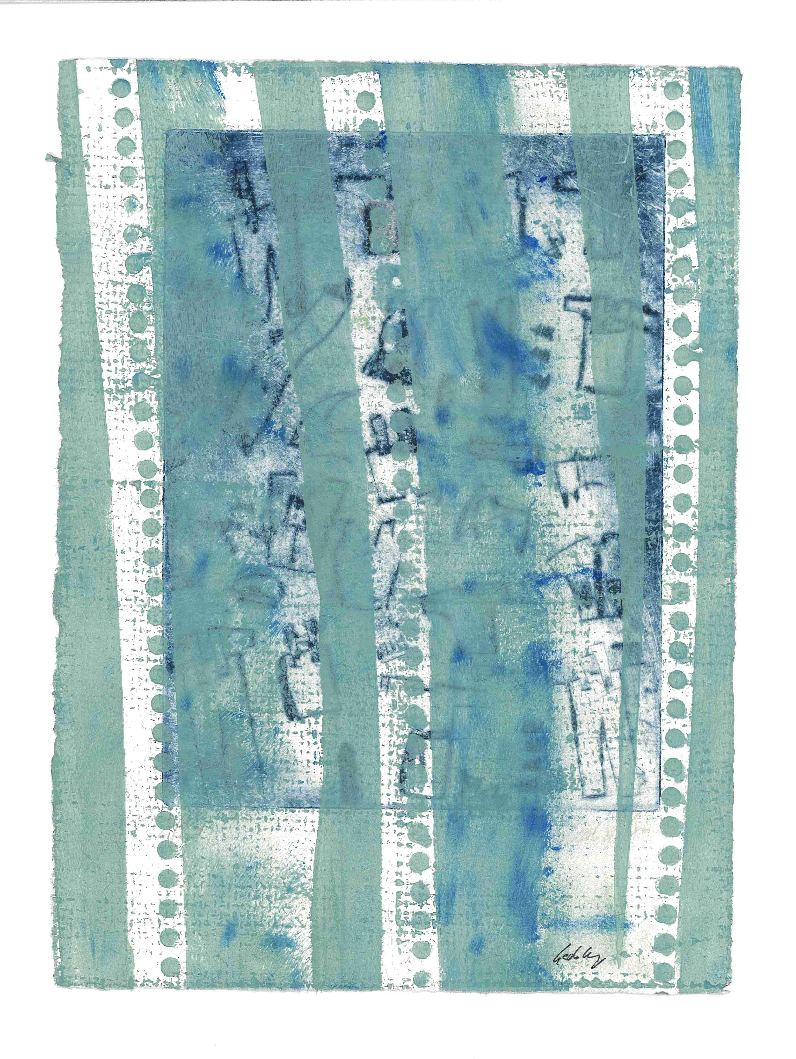 Die Monotypie ist ein Einmaldruck-Verfahren: Dabei wird eine Platte (im A5 oder A4 Format) mit wasserlöslicher Linoldruckfarbe eingewalzt und auf Papier abgedruckt, das man von der Rückseite mit einfachen Zeichnungen gestaltet. In kurzer Zeit entstehen viele Drucke, die auch mit anderen grafischen Techniken nach der Trocknung weitergestaltet werden können, z.B. durch Zuschneiden, Colourieren, Collagieren oder als Hintergrund für weitere Gestaltungen.
