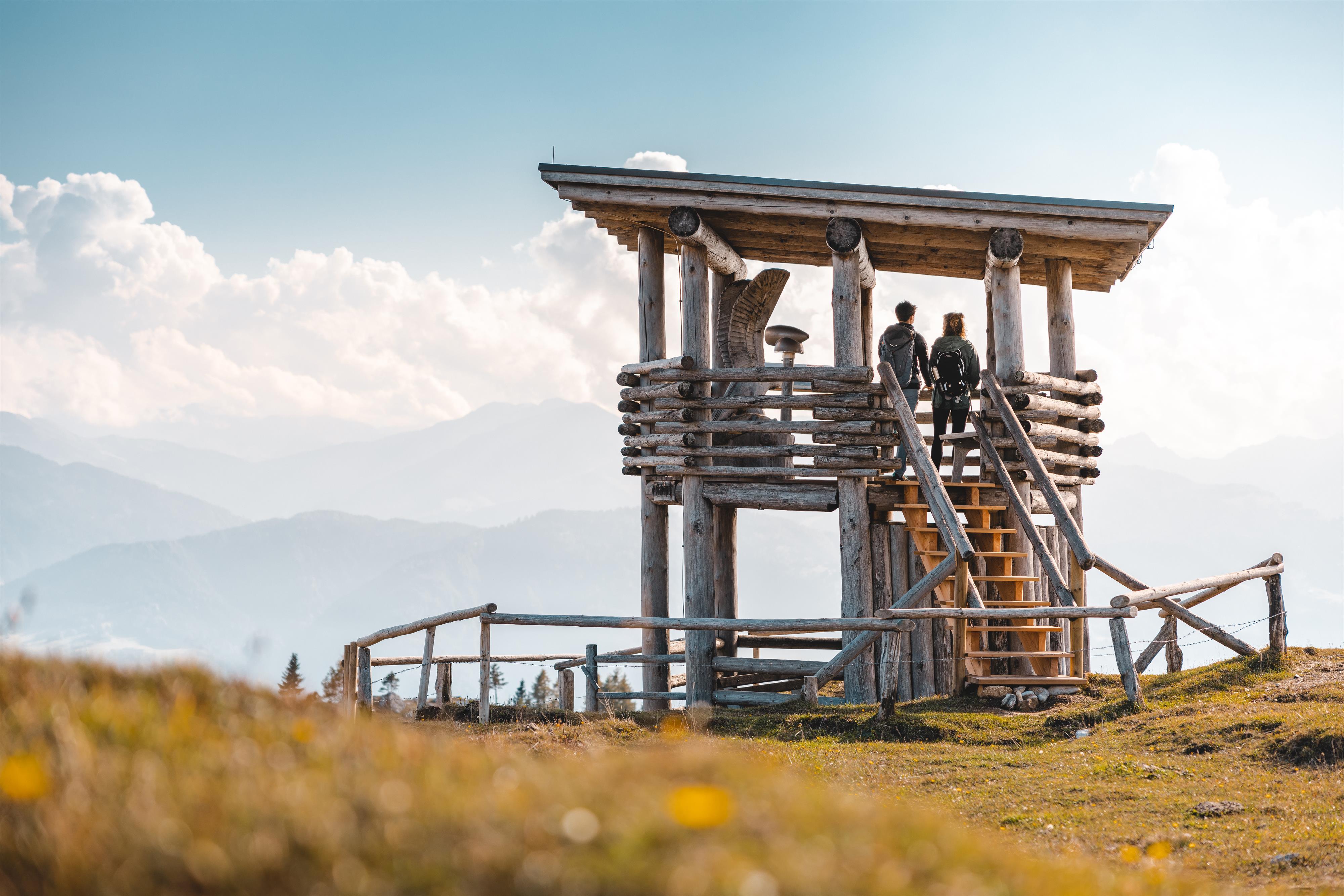 Beim Parkplatz des Hotels Kraftquelle Schlossblick (Bus-Ausstieg: Franzlerbrücke) erwartet Sie bereits unser Wanderguide. Heute wandern Sie ein Stück weit auf der Adlerwegetappe 4. Nordwärts auf markierten Wegen, geht es hinauf zum „Adlerhorst“ mit seinen Schnitzwerken. Oben angekommen können Sie den Ausblick auf das Inntal und das umliegende Bergpanorama genießen. Je nach Öffnungszeit (Infos auf unserer Website) kann die „Hundsalm Eis- und Tropfsteinhöhle“ mit einem ausgebildeten Guide besichtigt werden.