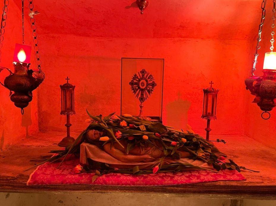 Ein besonderes Erlebnis für die Kinder ist das Niederlegen von Blumen und Entzünden von Kerzen im Heiligen Grab im Oktogon.