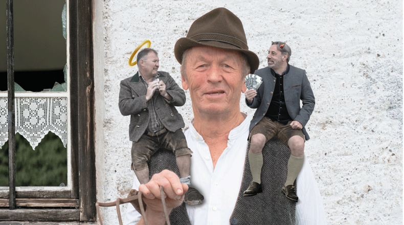 Mit dem Hof des Kreithofer-Bauern (Wolfgang Loiperdinger) schaut es gar nicht gut aus. Die Geschäfte laufen schlecht, die Magd Zenz (Marlene Dicker) sucht auch das Weite und der geldgierige Haslinger-Bauer (Markus Gruber) lässt nichts unversucht, um sich den Hof unter den Nagel zu reißen. Dafür ist er sogar bereit, seine Tochter Ev (Laura Welkhammer) mit dem Kreithofer-Sohn Lois (Tobias Webersberger) zu verheiraten. Als dieser Plan misslingt, entschließt er sich, dem Kreithofer dessen Großvater (Willi Zachbauer) abzukaufen und sich dadurch den Hof als Erbe zu sichern, sehr zum anfänglichen Ärger seiner Gattin Nanni (Verena Holzner). Doch er übersieht dabei, dass dieser Großvater ein noch viel größerer Spitzbub ist als er selbst – und indirekt sorgt Knecht Martl (Michael Webersberger) dafür, dass letztlich alles gut ausgeht. Fragt sich nur, für wen…