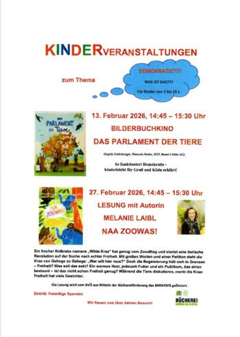 13. Februar 14:45 - 15:30 Uhr - Bilderbuchkino "Das Parlament der Tiere"