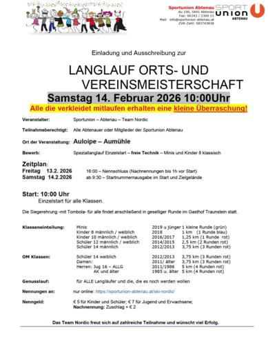 Langlauf Orts- und Vereinsmeisterschaft 2026