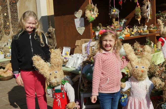 Kinderprogramm u. a. Ponyreiten (SA+SO nachmittags), Streichelzoo, Osterhasen-Backwerkstatt, Bastelstationen (z. B. Kindertöpfern, Puzzlen)