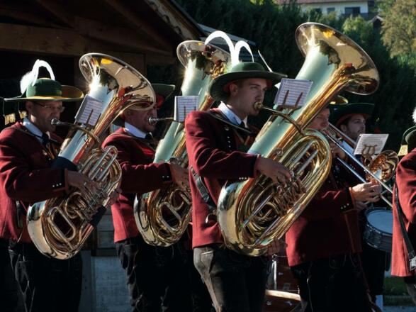 Traditionelles Platzkonzert der Musikkapelle Patsch beim Kiechlhof in Patsch.