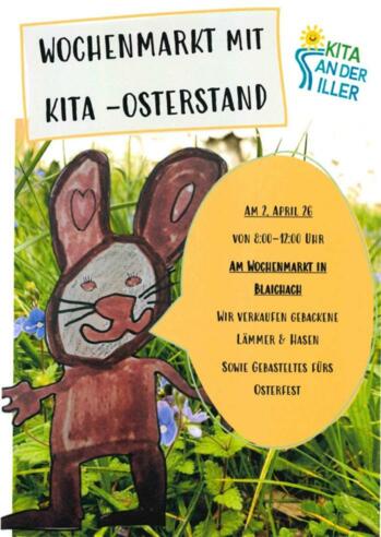 Kita-Osterstand am Wochenmarkt in Blaichach mit Verkauf von selbstgebackenen Lämmern & Hasen, sowie Gebasteltem, ideal als Deko oder Geschenk für das Osterfest.