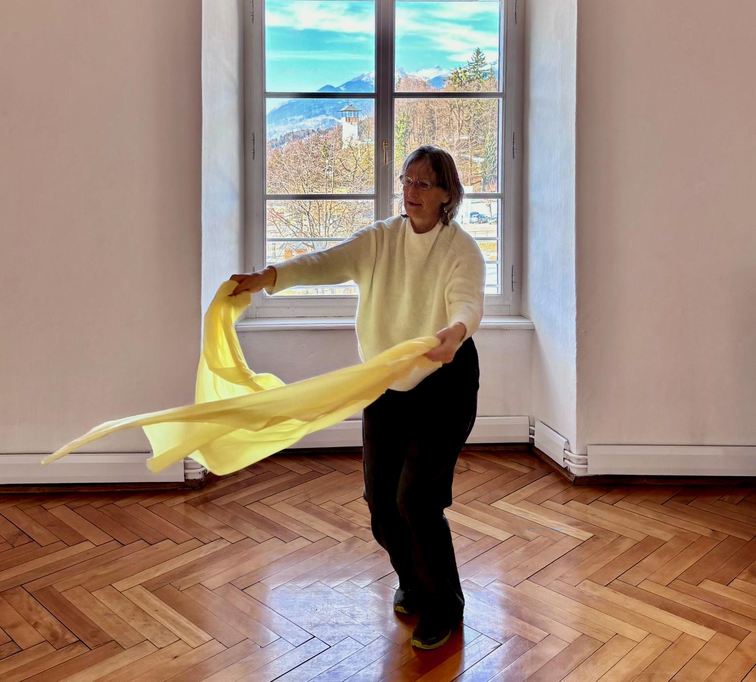 Mit Freude und Leichtigkeit in Bewegung sein, tanzen, Übungen, die gut tun und leicht mit in den Alltag zu nehmen sind. Atmen, dehnen, kräftigen, die Stimme hat Raum, sich in die Bewegung tragen lassen, inspiriert von Musik, inspiriert von Stille, inspiriert von der Schönheit des Stiftsaals Stift Millstatt.
