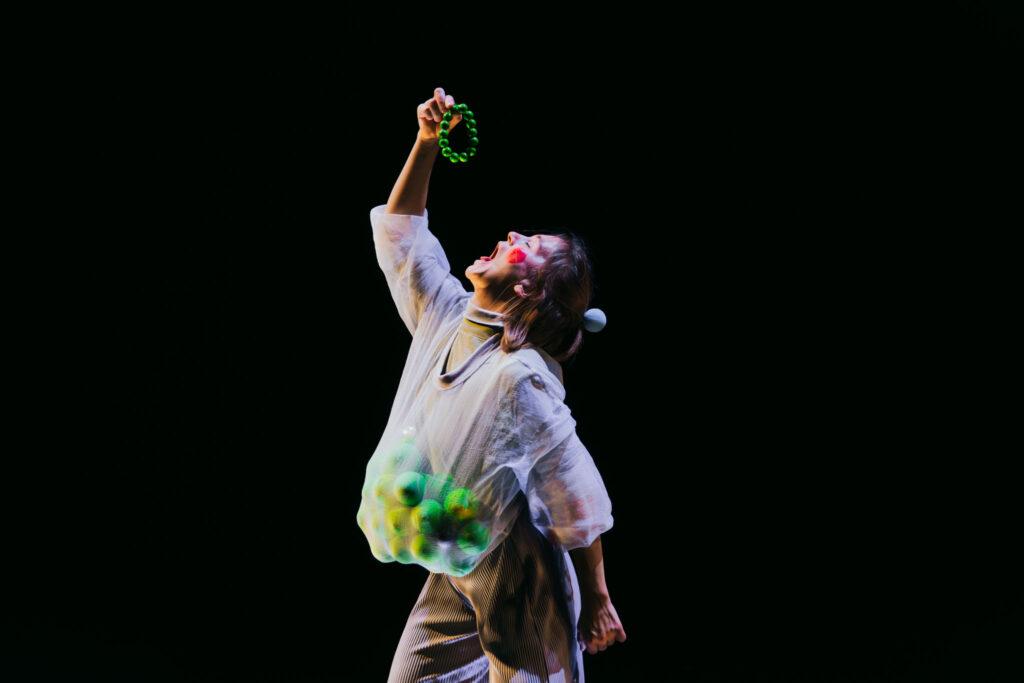 „Schritt 1, Schritt 2 und folgt dann 3?Erst links dann rechts, der Boden krächzt. Bleibst du dann stehn, will ich mich drehn. Nehm dich gern mit im Ungleichschritt.“ Bälle rollen, fordern uns zum Tanz und trippeln im Dreivierteltakt. Wir wiegen uns im Walzerschritt und tanzen aus der Reihe. Zwei Musikerinnen und eine Performerin spielen auf und schaffen mit Geige und Schlagwerk ein Fest für alle Sinne.