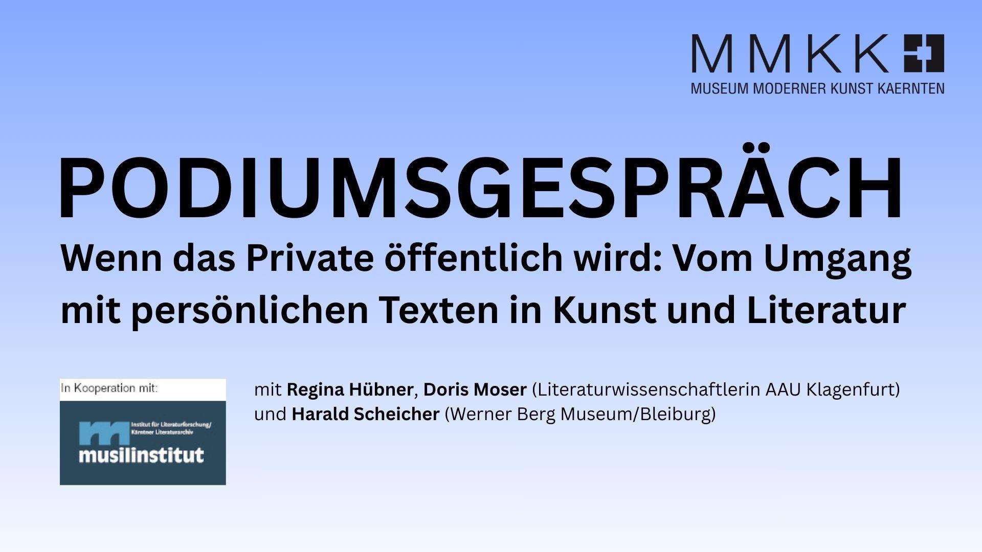 Podiumsgespräch mit Regina Hübner, Doris Moser (Literaturwissenschaftlerin AAU Klagenfurt) und