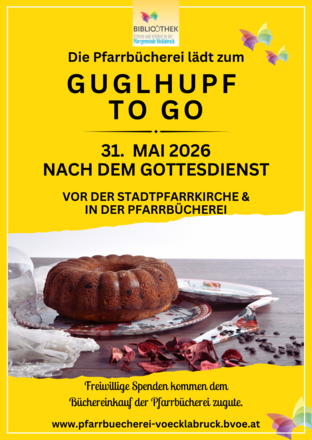 Am Sonntag 31. Mai wollen wir euch nach den Gottesdiensten und der Pfarrbücherei mit "GUGLHUPF TO GO" verwöhnen.