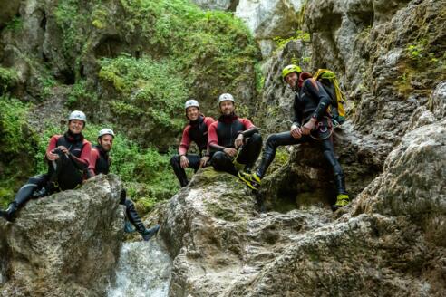 Canyoning im Kaiserwinkl für den speziellen Adrenalin-Kick. Tiefgrüne Becken, glasklares Bergwasser, Springen, Abseilen und Rutschen und eine in Jahrtausenden tief eingeschliffene Schlucht erwarten dich.