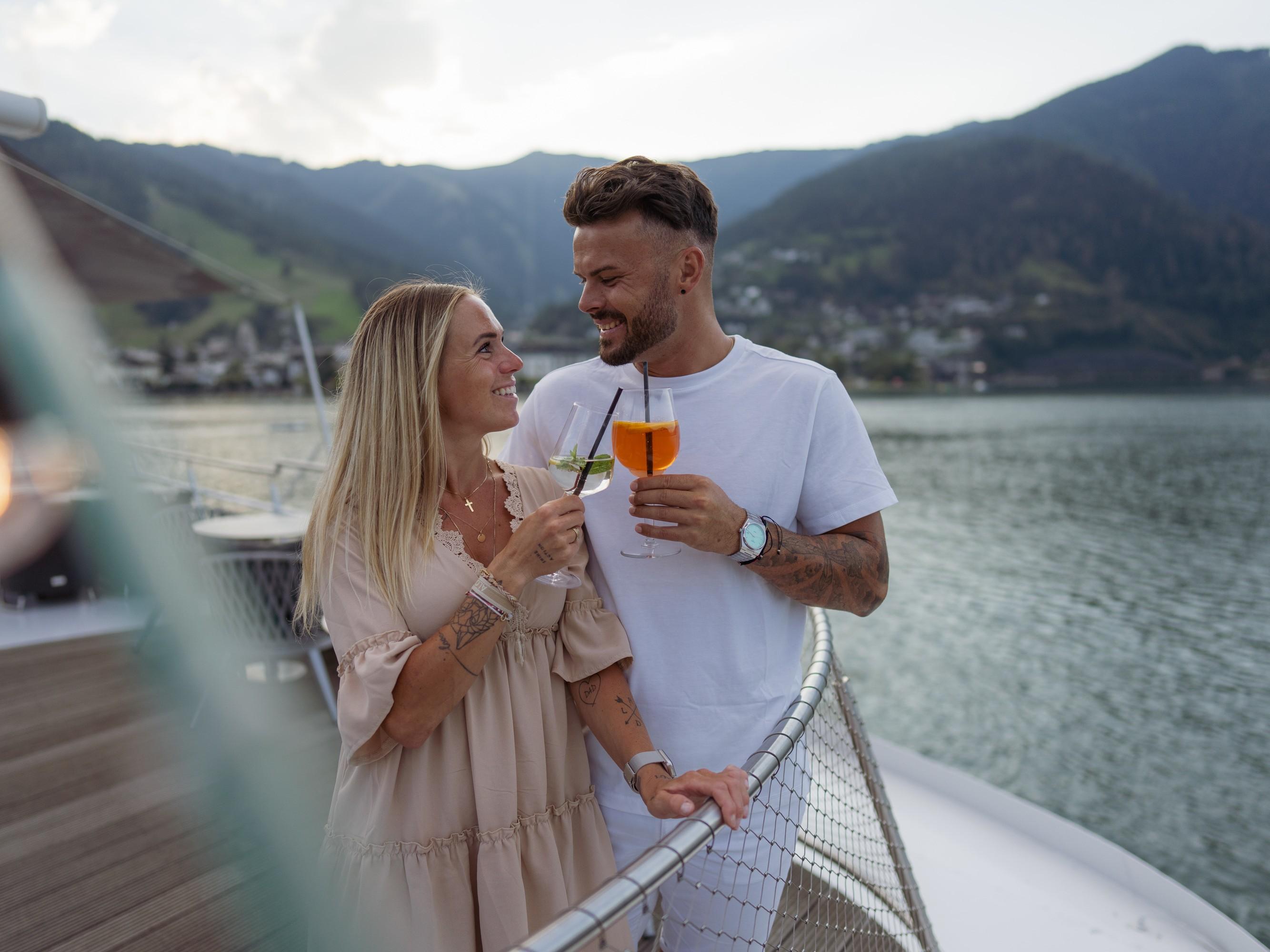 Immer Montags vom 13.07.-24.08.2026 kannst du an einem lauen Sommerabend den Tag ganz entspannt ausklingen lassen. Genieß das Panorama der umliegenden Bergwelt im Licht der untergehenden Sonne am Deck der MS Schmittenhöhe.