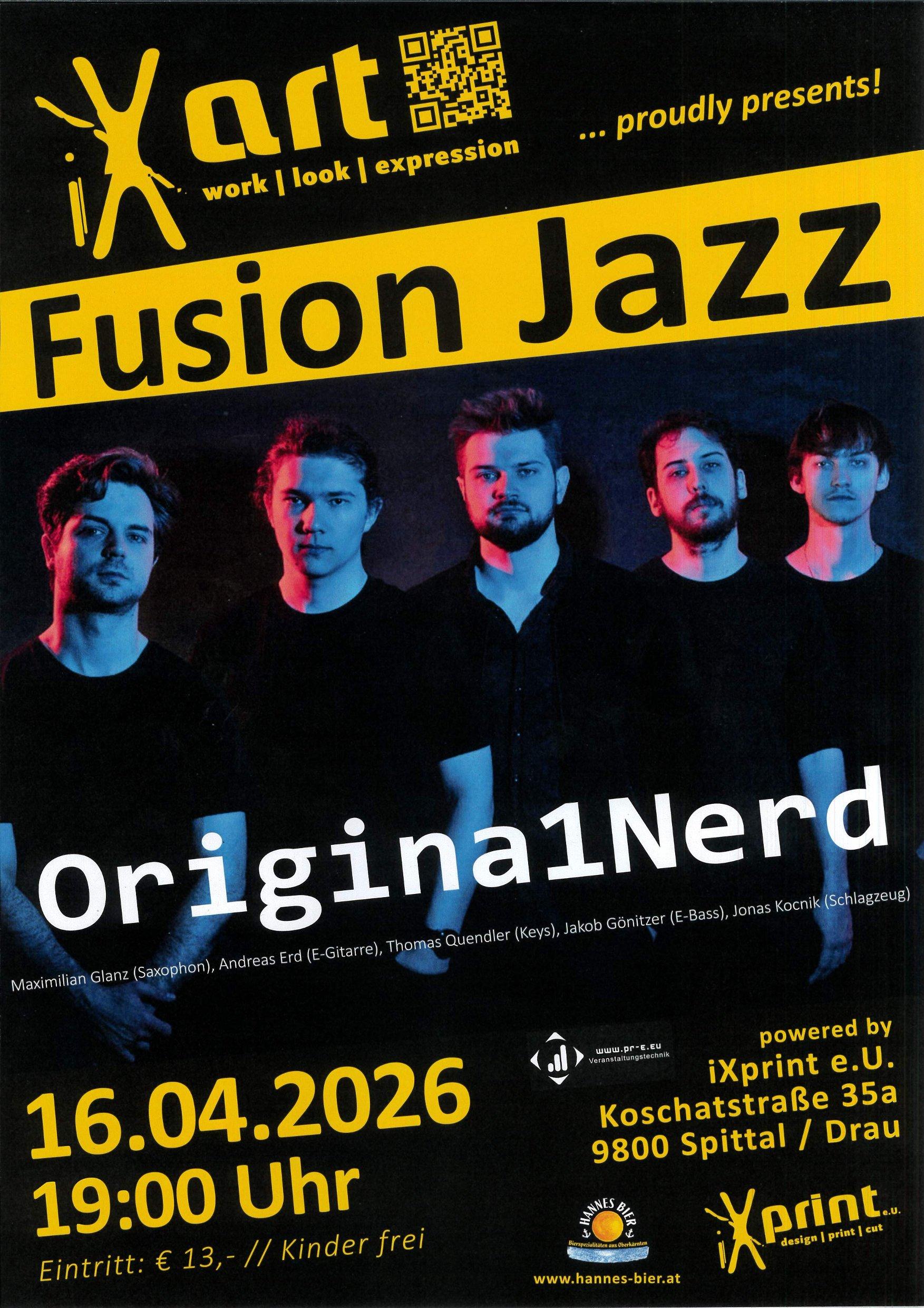 Original1Nerd mit Maximilian Glanz (Saxophon), Andreas Erd (E-Gitarre), Thomas Quendler (Keys), Jakob Gönitzer (E-Bass), Jonas Kocnik (Schlagzeug)