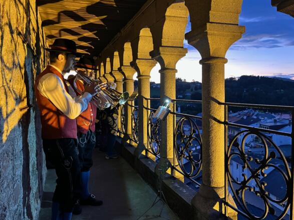 In Kooperation mit dem OÖ Volksliedwerk wird am 29. August 2026 in dieser einzigartigen Location ein besonderes Konzert organisiert und der ehemalige Wehrturm in einen Klangturm verwandelt: Aufgeteilt auf die verschiedenen Ebenen werden kleine Volksmusikgruppen und Solist/innen zeitgleich im Kirchturm ruhige, friedvolle Melodien spielen. Da die Mauern so massiv sind, mischen sich die Klänge nicht, sondern das Publikum kann zwischen den Ebenen hin- und herwandern und den verschiedenen Ensembles lauschen. Auch die Außengalerie wird bespielt. So ergeben sich individuell unterschiedliche Klangerlebnisse, die beim abschließenden geselligen Zusammensitzen am Kirchenplatz noch ausgetauscht und abgerundet werden.