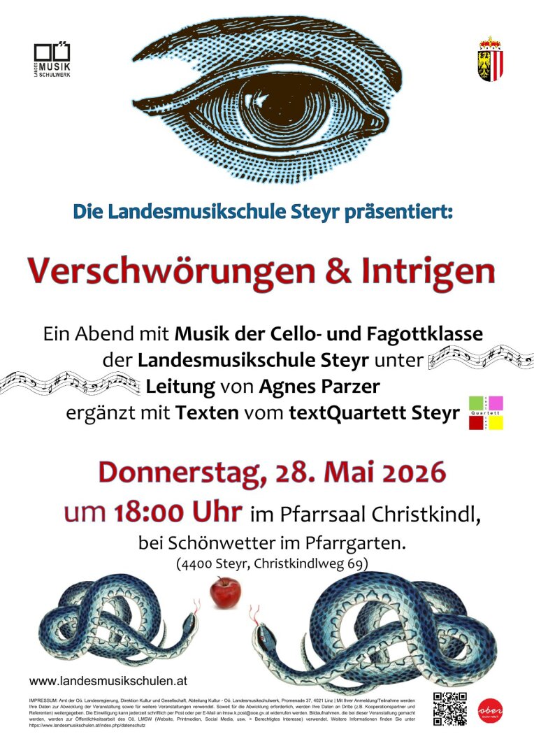 Ein Abend mit Musik der Cello- und Fagottklasse der Landesmusikschule Steyr unter Leitung von Agnes Parzer ergänzt mit Texten vom textQuartett Steyr.