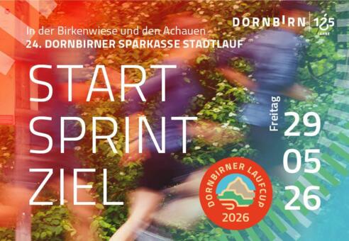 Der Dornbirner Sparkasse Stadtlauf findet am Freitag, 29. Mai 2026 zum dritten Mal in der Birkenwiese und den Achauen statt. Auf der Laufbahn und in den Achauen können verschiedene Distanzen gelaufen werden.